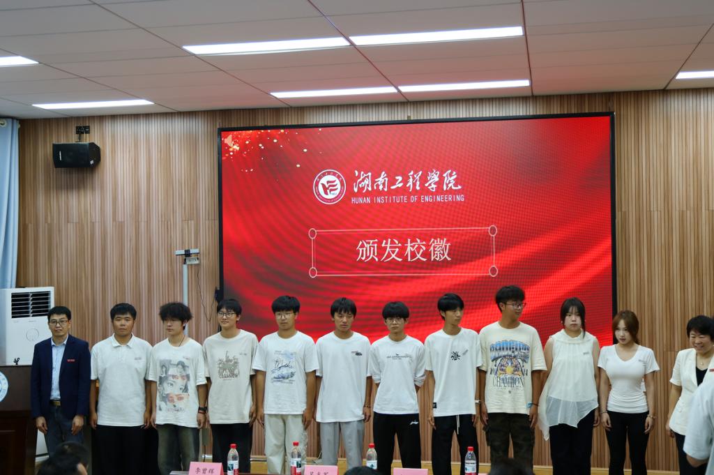 典礼在雄壮的国歌声中拉开帷幕。湖南工程学院领导为2025级新同学逐一佩戴校徽。小小的徽章承载着两校共育匠心的使命,也标志着同学们正式成为"楚怡工匠计划"光荣的一员。