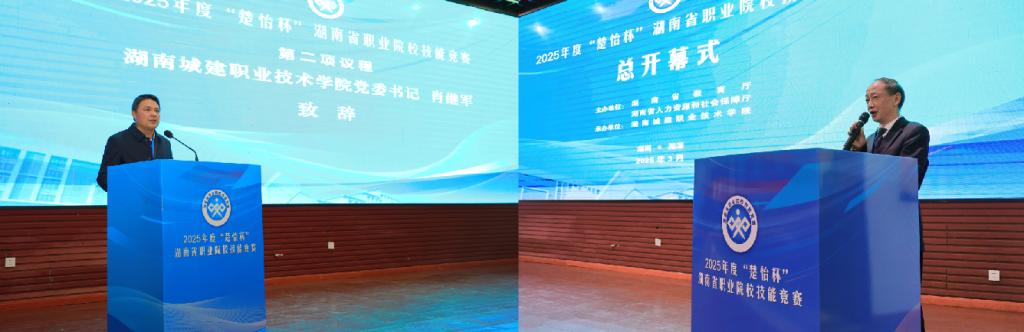 3月18日,2025年度“楚怡杯”湖南省职业院校技能竞赛在我院总开幕。省教育厅副厅长王仁祥、湘潭市副市长陈若杨等出席开幕式,全省职业院校师生代表、行业企业代表等300余人共同见证开幕式。开幕式由院党委副书记、院长周劲松主持。