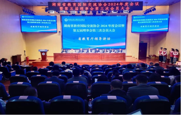 会上,中国教育国际交流协会副会长王永利作专题讲座。湖南省教育厅国际交流处处长颜丹就协会的建设和运行提出了工作要求和期望。湖南省教育国际交流协会会长李纪武向大会作2024年度工作报告。中国教育国际交流协会副会长潘送球向大会作2024年度财务报告。