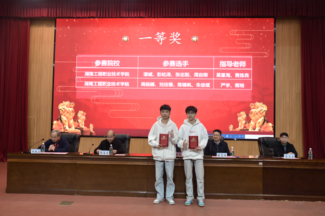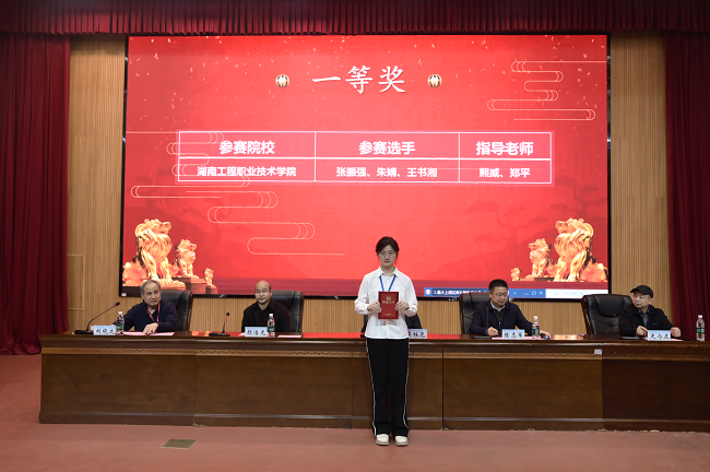 颜浩龙、刘晓文分别宣读两项竞赛成绩,与会领导为获奖选手颁奖。