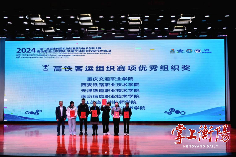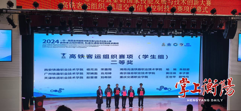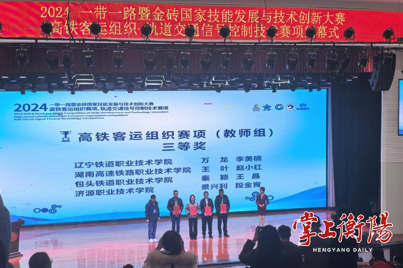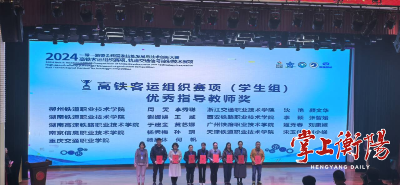 近日,“2024一带一路暨金砖国家技能发展与技术创新大赛”高铁客运组织赛项在柳州落下帷幕。经过数轮紧张刺激的角逐后,湖南高速铁路职业技术学院表现突出,荣获了五项大奖。其中,学生组荣获二等奖,教师组荣获三等奖,学校荣获优秀组织奖,两位教师荣获优秀指导老师奖。