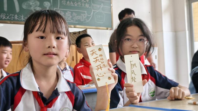 DIY创作环节,彩笔与空白小书签成为小朋友表达创意的工具,他们发挥想象力用彩笔在空白书签上自由创作,动物、梦想、祝福等元素跃然纸上,展现了他们心中的奇妙世界。