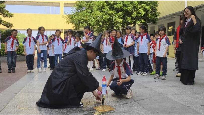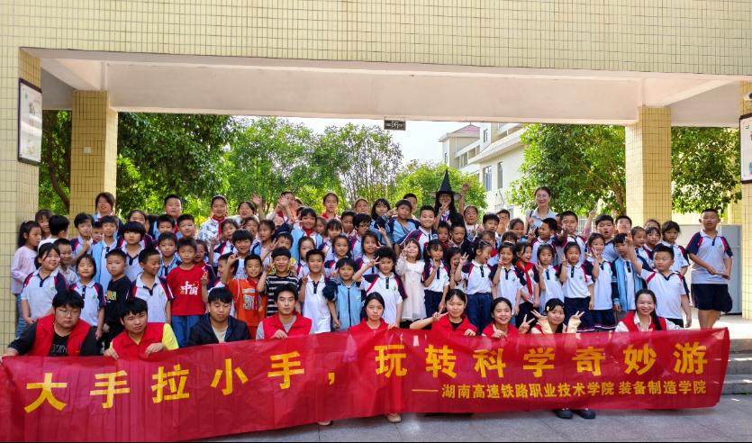 近日,装备制造学院携手衡阳市雁峰区科学技术协会、衡阳市雁峰区奇峰小学共同举办了“大手拉小手,玩转科学奇妙游”科普活动。活动以沉浸式科学实验和创意实践为主线,通过趣味互动与知识融合,为奇峰小学的学生们呈现了一场别开生面的科学“魔法”秀。