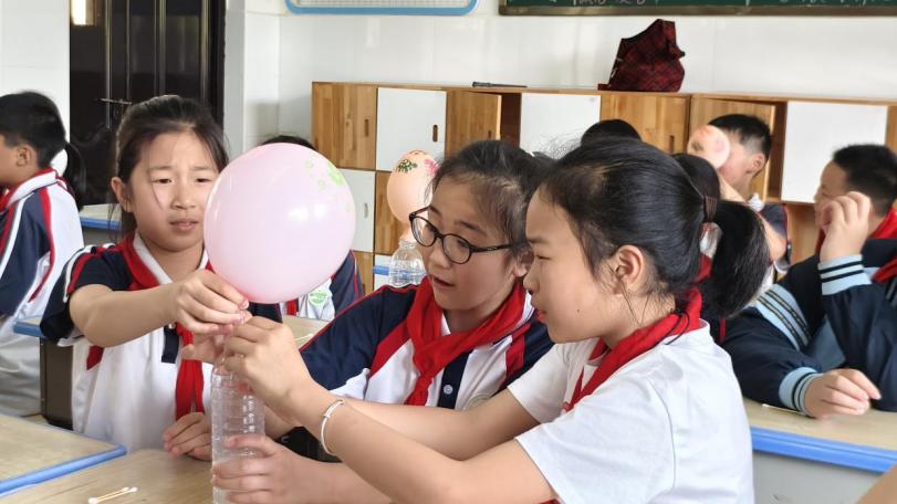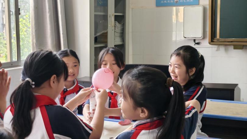 在活动现场,趣味实验精彩纷呈。室内,志愿者们化身“魔法师”,以“故事小剧场”开启奇妙旅程。“隐形墨水密信”实验中,孩子们用维生素 C 棉签写字,再用碘伏显影,见证了氧化还原反应的神奇魅力;“气球自动充气”实验里,小苏打与醋接触产生二氧化碳,气球瞬间膨胀,孩子们在动手操作中领悟酸碱反应原理,现场欢声笑语不断。