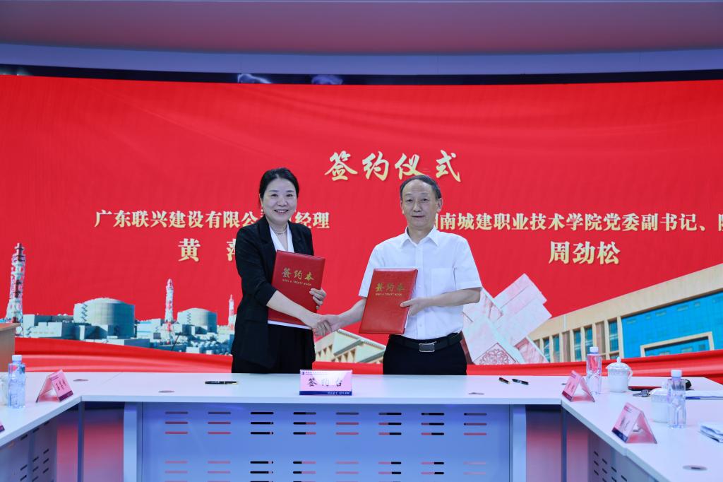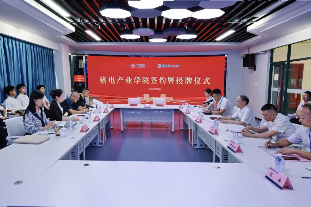 7月1日,湖南城建职业技术学院与广东联兴建设有限公司共建核电产业学院、与中国核工业二三建设有限公司共建核电校内实训基地签约及授牌仪式在学院土木大楼附楼举行。学院院长周劲松、副院长李曾辉,广东联兴建设有限公司总经理黄萍、总经理助理兼产教融合中心主任江洁,中国核工业二三建设有限公司阳江培训基地常务副校长曲振伟、副校长石高峰出席仪式,学院实训中心和建筑设备工程系部门负责人参加。仪式由学院教务处处长刘龙主持。