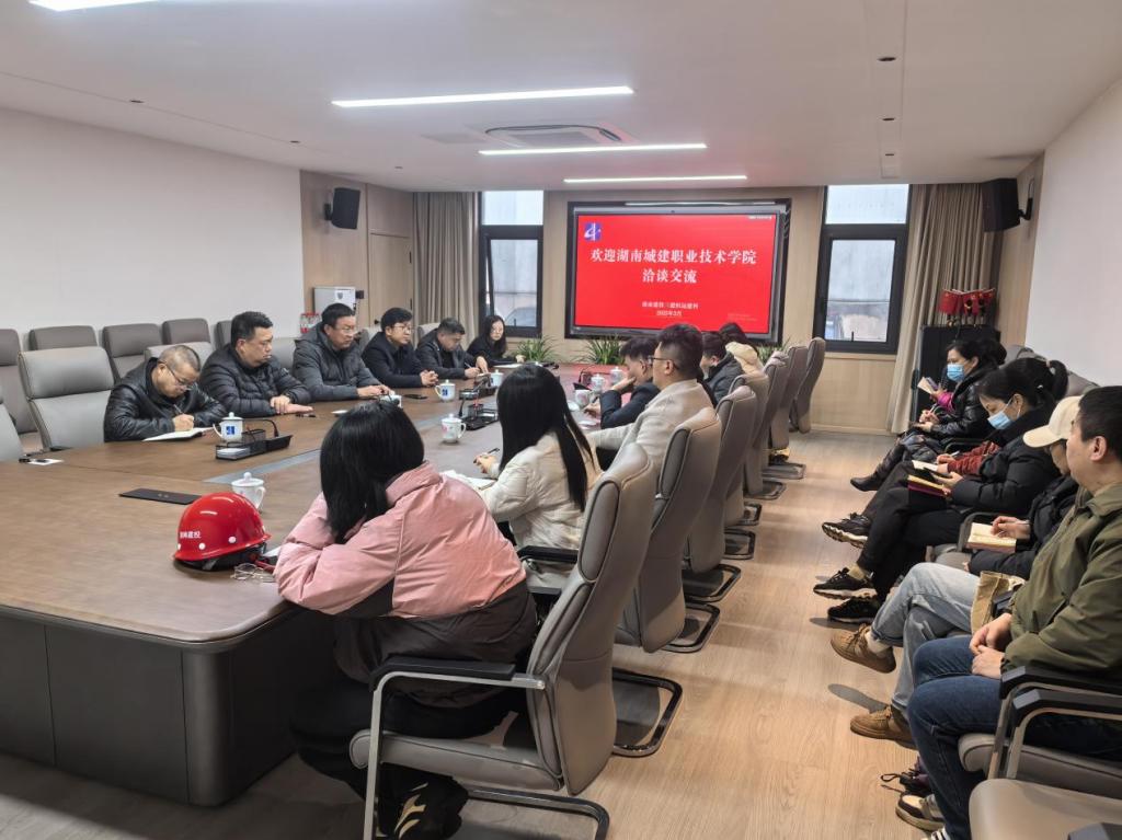 为加强产学研用校企深度融合,推动“建筑智能建造创新发展中心”建设,3月14日,学院党委副书记刘霁带队到湖南恒运建筑科技发展有限公司开展校企合作洽谈交流。管理工程系常务副主任李延超、系部专业教师参加。